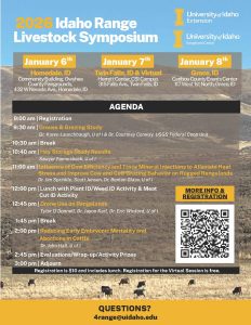 Idaho Range Livestock Symposium DATE: January 6 - January 8, 2026 | LOCATION: Homedale/Twin Falls/Idaho Falls/Virtual Download pdf here: IRLS 2026 Flyer