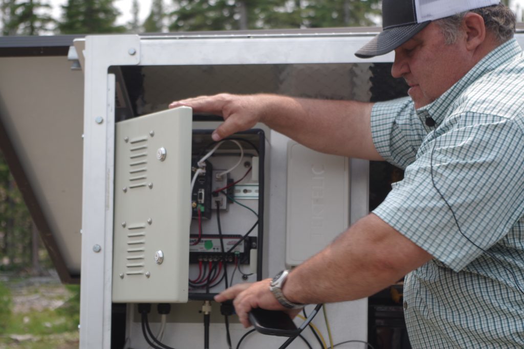 Yelich works with Vence technicians to set up multiple base stations on Forest Service and BLM lands to provide broad coverage in steep, mountainous terrain. Vence technicians check on the coverage with a radio frequency scan.