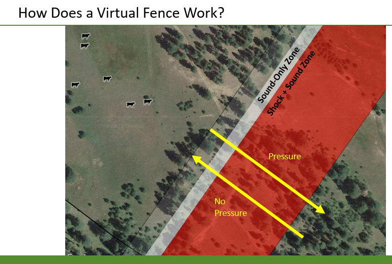 Virtual Fencing works like an invisible fence for pets but at a much larger scale for livestock management.
