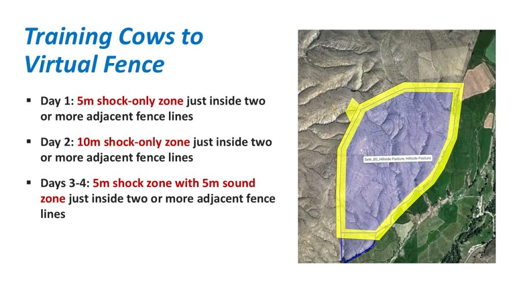 To get started, it takes 4-5 days to train the cattle in a small pasture so they learn to respect the Virtual Fence boundaries.