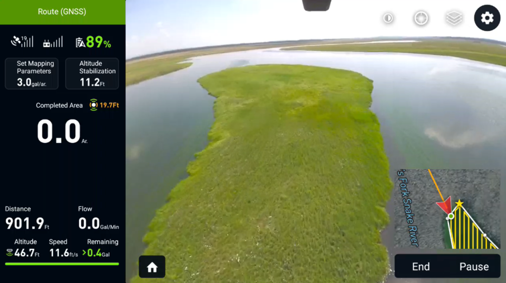 View from the drone control dashboard as Fremont County treats noxious weeds on Henrys Fork islands.