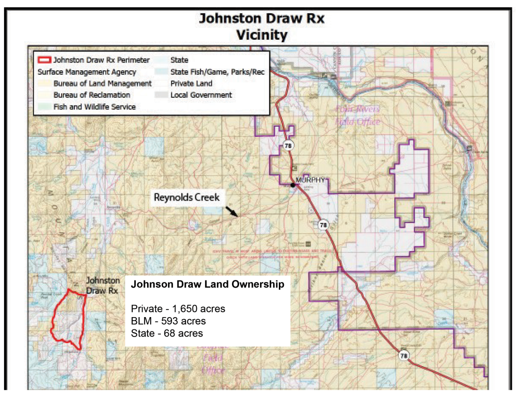 “I think it’s a great deal,” added Martin Jaca, whose family also owns land in Johnston Draw and the upper Reynolds Creek area. “In 2015, when we saw the Soda fire, we were kind of shocked and awed, didn’t know what to think about fire, but afterward, the effects of the fire have proven to rejuvenate the rangeland.